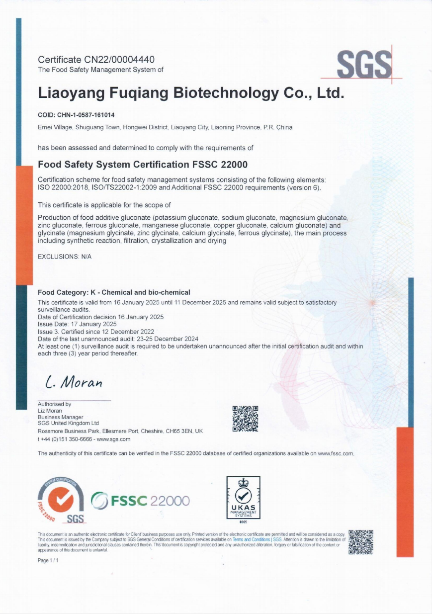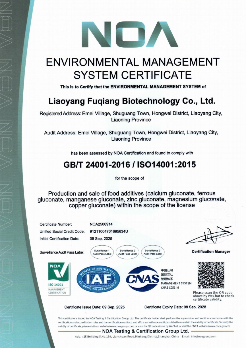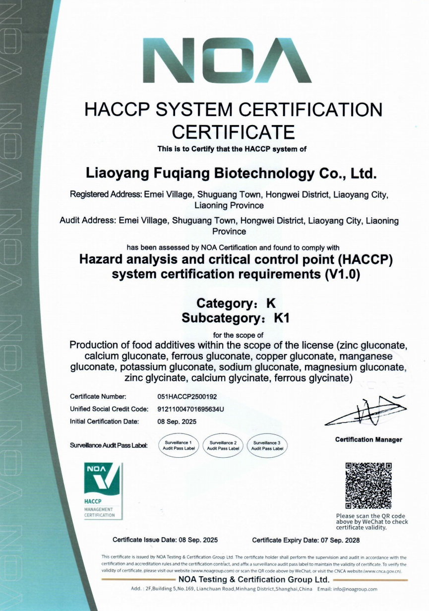 Add: Emei Village,HongWei District,Liaoyang City Liaoning E-mail: export1@fqgluconates.com
